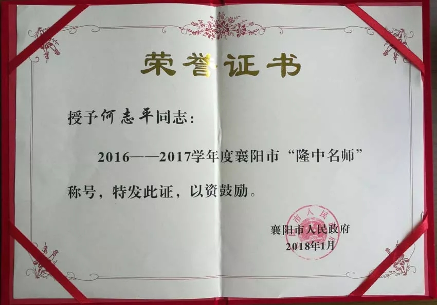 4月17日,襄陽市教育局隆重舉行2016—2017學(xué)年度新入選隆中名師、隆中名校長頒證儀式,襄陽三中何志平、陳芳老師被市人民政府授予“隆中名師”榮譽(yù)稱號(hào)。